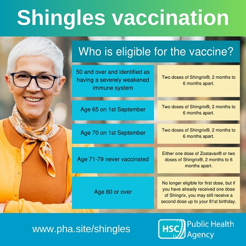 More people have become eligible for the shingles vaccination from September 23. This will give more older people and those with a weaker immune system protection against shingles which can be an extremely painful condition and complications can be long-lasting.